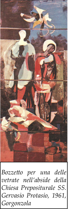 Parte superiore della vetrata della Chiesa Parr. S. Ambrogio ad Nemus, Cinisello Balsamo, 1968